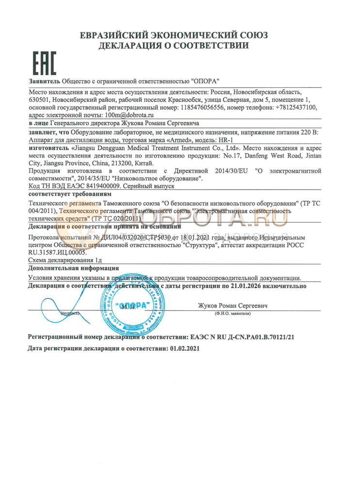 Аппарат для дистилляции воды в лабораториях Армед HR-1 (ДИСТИЛЛЯТОР)