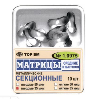 Матрицы металлические контурные секционные средние с выступом твердые 1,0975т50мкм