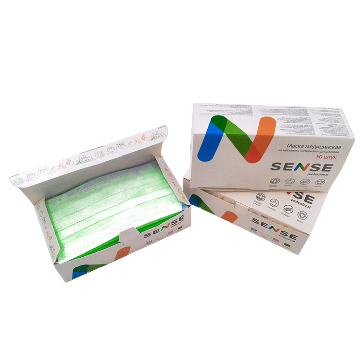 Маска “SENSE” трехслойная, на резинках, с носовым фиксатором, зеленая